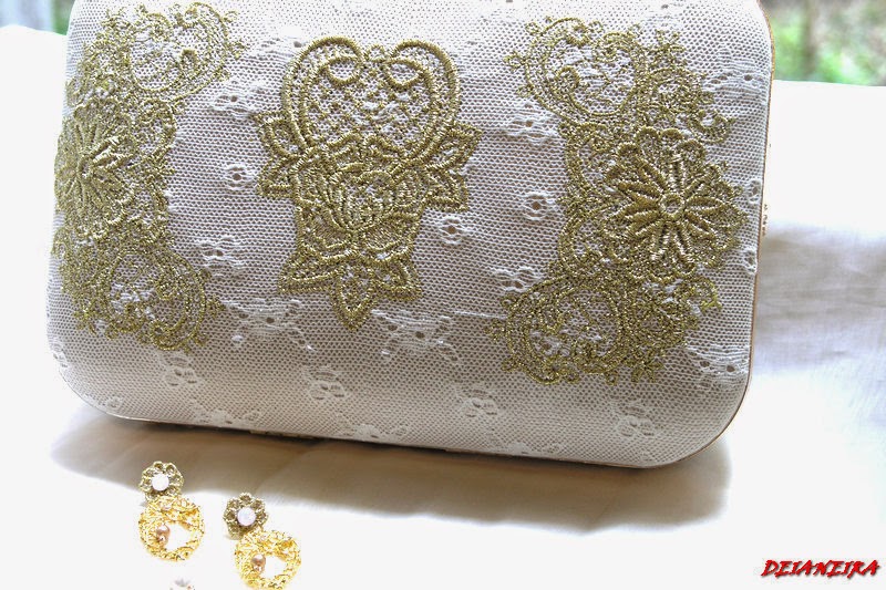 Poseta box clutch realizata cu dantela ivoir,satin auriu,broderie matase aurie ,alba,margele toho si delica de 1 si 2 mm in tonuri de alb perlat , alb frosted,ivoir,pink rose blush, roz opalescent,picaturi frosted white,,cristale swarovski AB,perle de cultura albe,perle swarovski antique gold,accesoriu cristale,margele firepolished crystal clear efect AB.Manerul detasabil este crosetat cu matase crem si margele toho crystal clear efect AB.Dimensiune poseta 20x13 cm .Poseta este insotita de cercei asortati realizati cu accesorii aurite ,dantela florala matase laminata ,cristal swarovski alabaster pink,perla cultura alba picaturi delica,perla swarovski de 4 mm antique gold. Bazele cerceilor sunt cu surub.