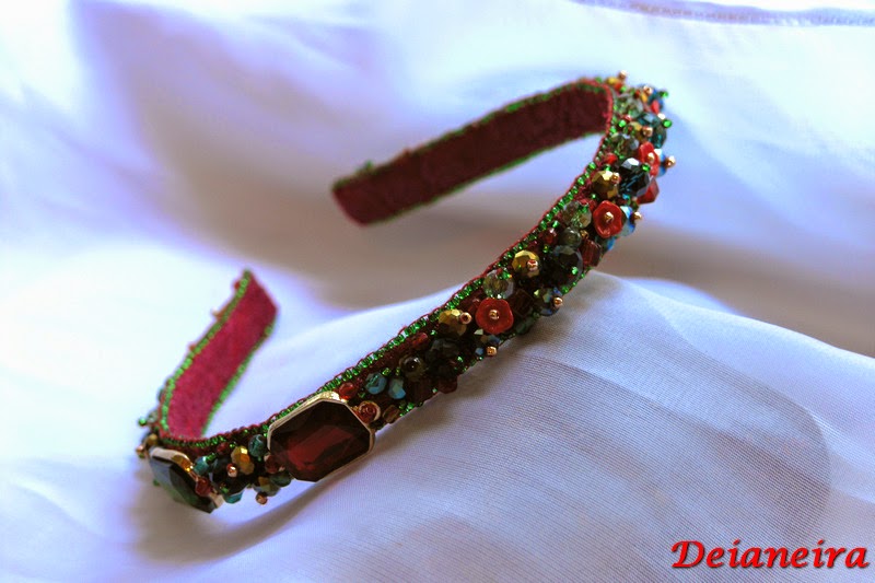 Bentita este realizata cu dantela bordeaux, floricele sticla Cehia ,margele firepolished verde smarald efect AB si dark siam red, rondele cristal in tonuri de verde smarald, peridot, verde heliotrope,auriu, margele toho , cristale in montura aurie. Baza este metalica de 7 mm latime. REZERVAT